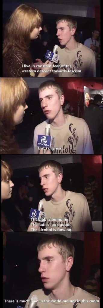 - “With bae froo fick and fin / she already fick so I’m halfway there” – Dave, Sprinter. I wonder if English people really talk like that when they’re by themselves.